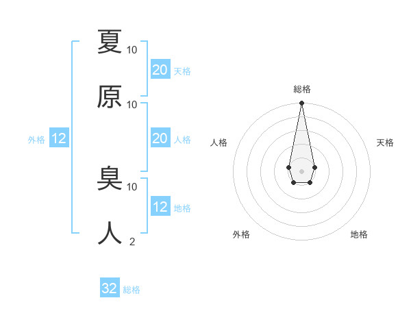 夏原 臭人さんの総格は32画の5点!