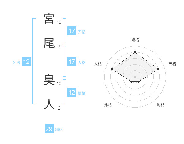 宮尾 臭人さんの天格は17画の4点!