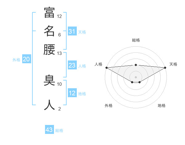 富名腰 臭人さんを姓名の画数から五運を鑑定