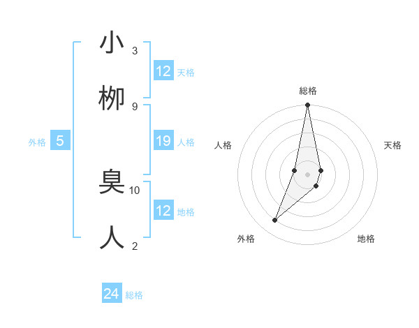 小栁 臭人さんを姓名の画数から五運を鑑定