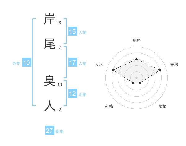 岸尾 臭人さんを姓名の画数から五運を鑑定