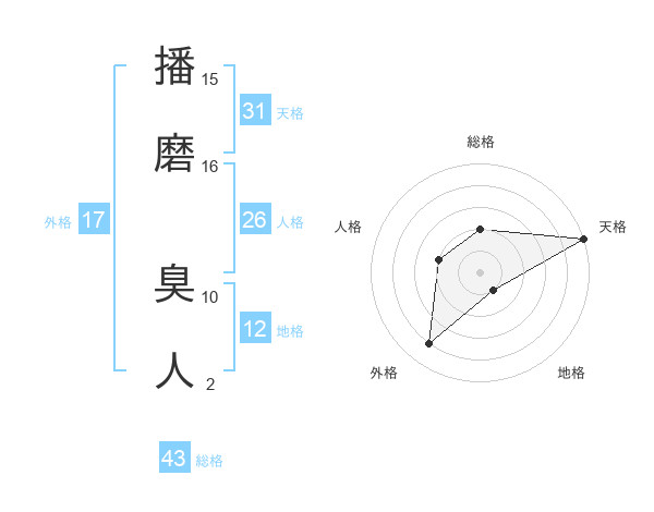 播磨 臭人さんを姓名の画数から五運を鑑定