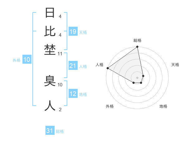 日比埜 臭人さんを姓名の画数から五運を鑑定