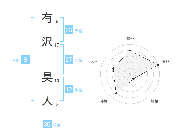 有沢 臭人さんの天格は23画の5点!