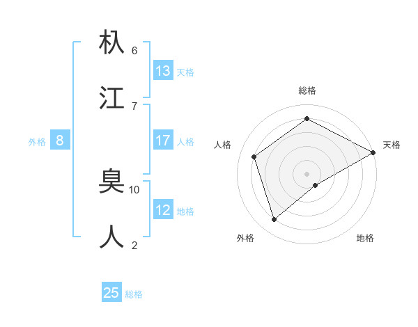 杁江 臭人さんを姓名の画数から五運を鑑定