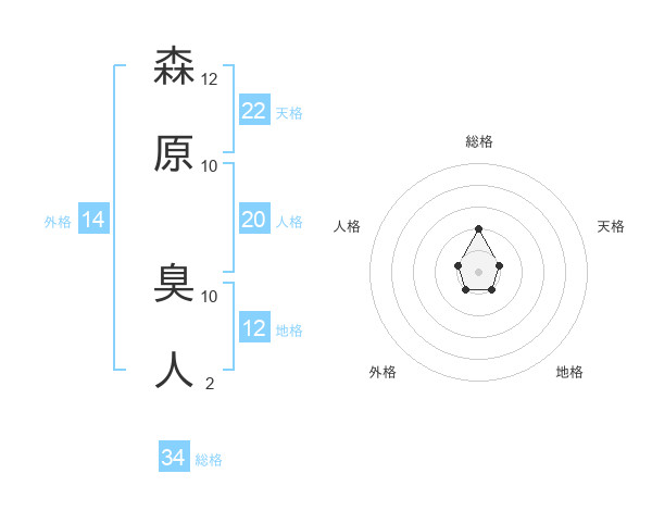 森原 臭人さんの総格は34画の2点!