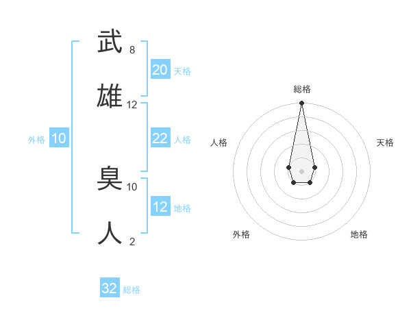 武雄 臭人さんの総格は32画の5点!