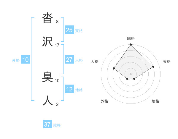 沓沢 臭人さんの総格は37画の5点!