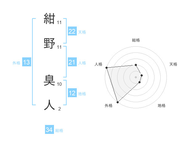 紺野 臭人さんを姓名の画数から五運を鑑定