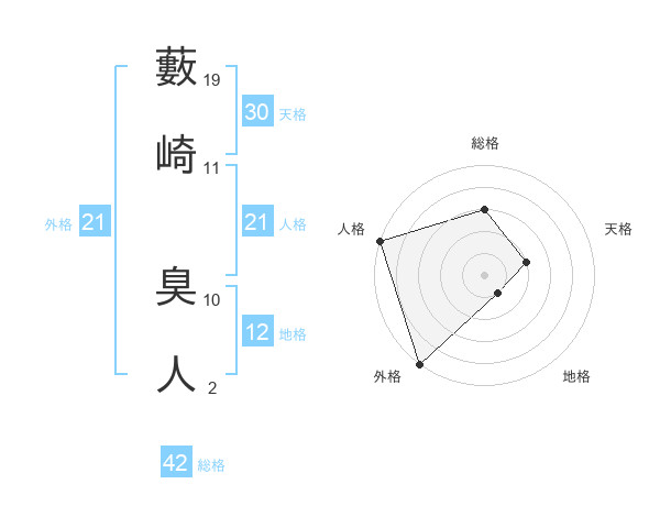 藪崎 臭人さんの外格は21画の5点!