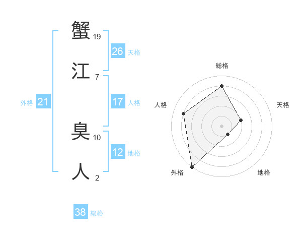 蟹江 臭人さんを姓名の画数から五運を鑑定