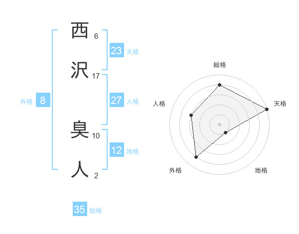 西沢 臭人さんの天格は23画の5点!