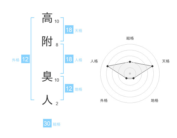 高附 臭人さんの天格は18画の4点!