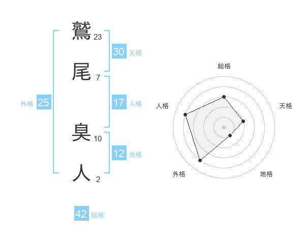 鷲尾 臭人さんを姓名の画数から五運を鑑定