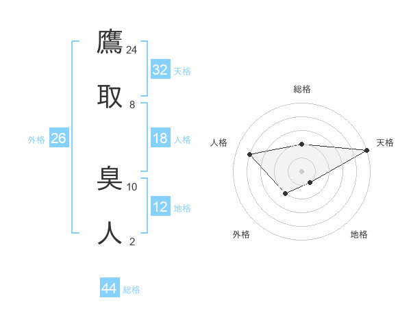 鷹取 臭人さんを姓名の画数から五運を鑑定