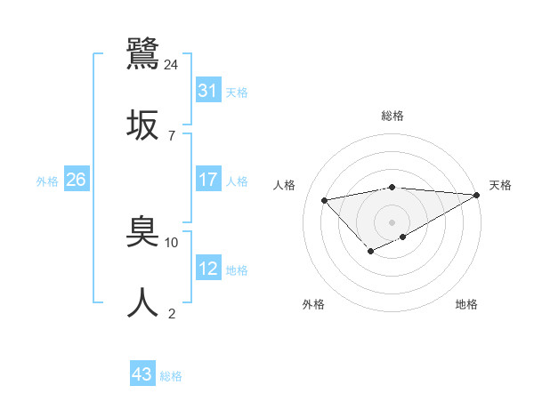 鷺坂 臭人さんを姓名の画数から五運を鑑定