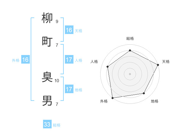 柳町 臭男さんを姓名の画数から五運を鑑定