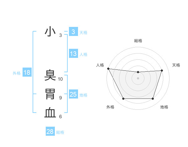小 臭胃血さんを姓名の画数から五運を鑑定