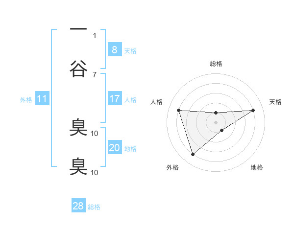 一谷 臭臭さんを姓名の画数から五運を鑑定