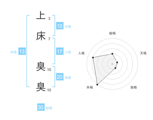 上床 臭臭さんの総格は30画の2点!