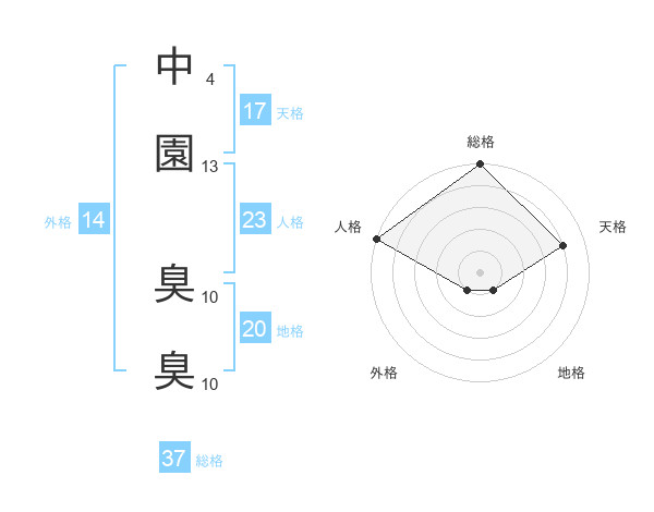 中園 臭臭さんの総格は37画の5点!