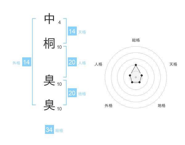 中桐 臭臭さんの総格は34画の2点!