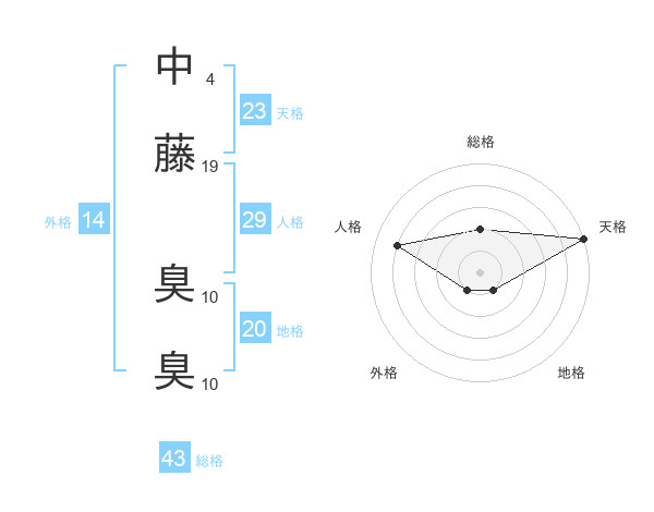 中藤 臭臭さんの総格は43画の2点!