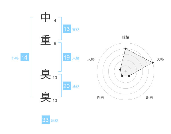 中重 臭臭さんの総格は33画の4点!