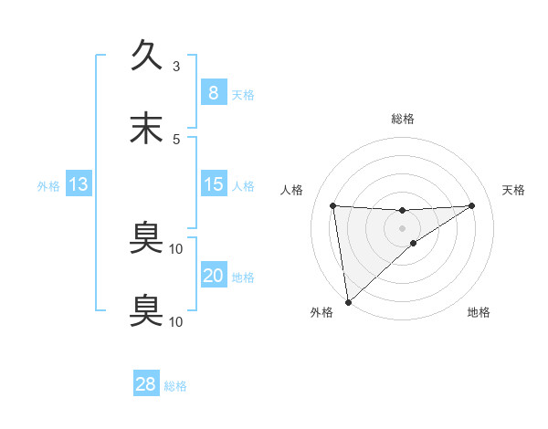 久末 臭臭さんを姓名の画数から五運を鑑定
