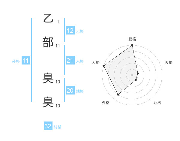 乙部 臭臭さんの総格は32画の5点!