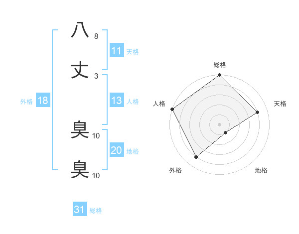 八丈 臭臭さんの総格は31画の5点!