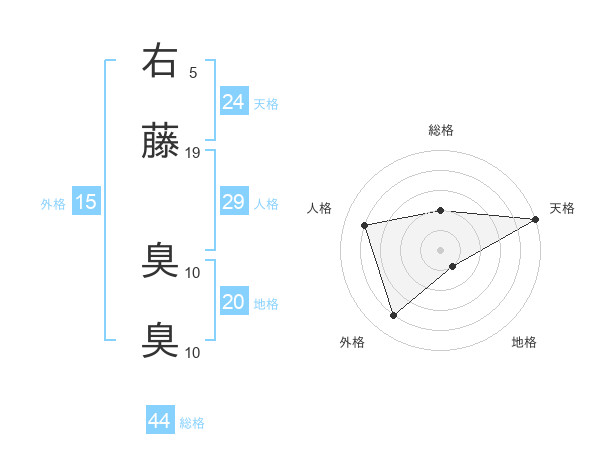 右藤 臭臭さんを姓名の画数から五運を鑑定