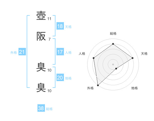 壺阪 臭臭さんの総格は38画の4点!