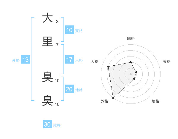 大里 臭臭さんを姓名の画数から五運を鑑定