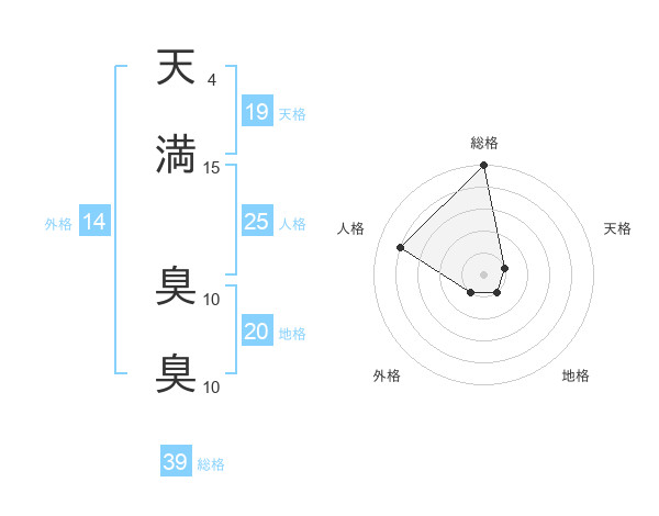 天満 臭臭さんを姓名の画数から五運を鑑定