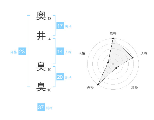 奥井 臭臭さんを姓名の画数から五運を鑑定