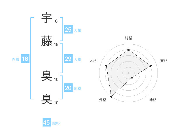 宇藤 臭臭さんの総格は45画の4点!