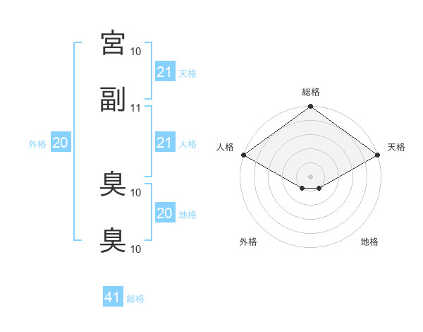 宮副 臭臭さんの天格は21画の5点!