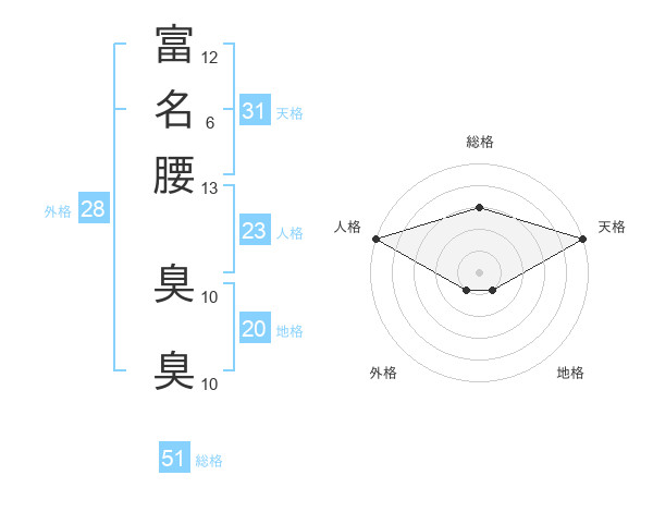 富名腰 臭臭さんの総格は51画の3点!