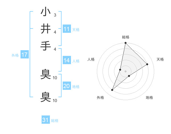 小井手 臭臭さんの総格は31画の5点!