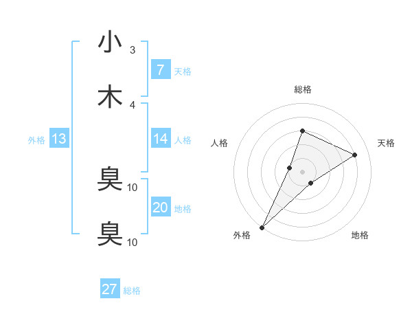 小木 臭臭さんの総格は27画の3点!