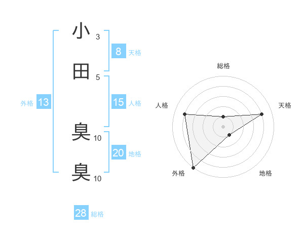 小田 臭臭さんの天格は8画の4点!