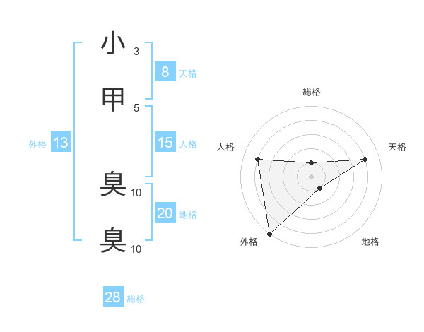 小甲 臭臭さんの外格は13画の5点!