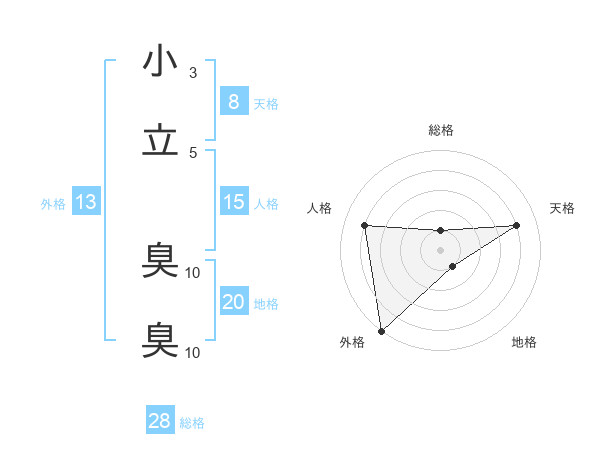 小立 臭臭さんを姓名の画数から五運を鑑定