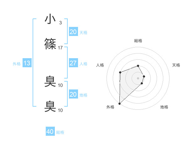 小篠 臭臭さんの総格は40画の2点!