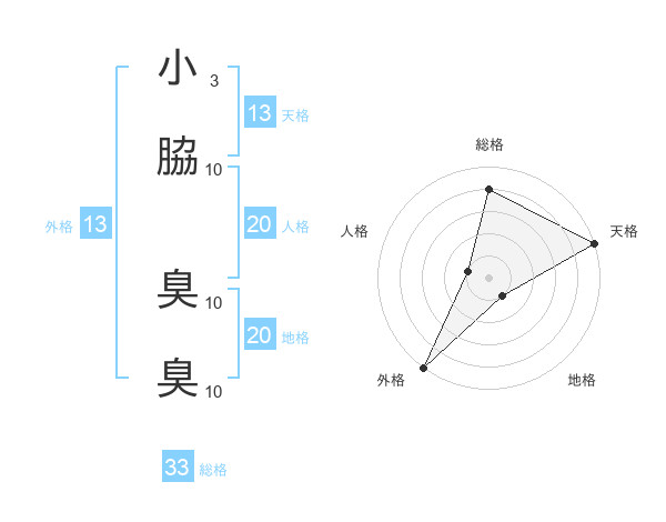 小脇 臭臭さんを姓名の画数から五運を鑑定