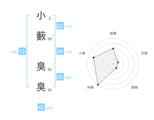 小藪 臭臭さんを姓名の画数から五運を鑑定