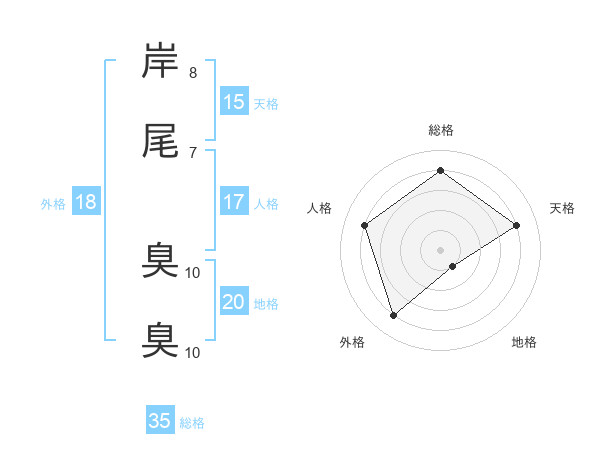 岸尾 臭臭さんの総格は35画の4点!