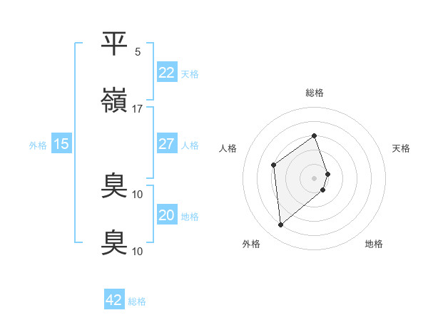 平嶺 臭臭さんを姓名の画数から五運を鑑定