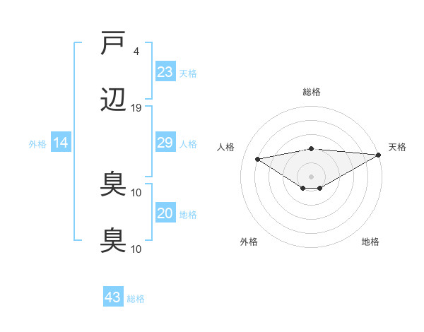 戸辺 臭臭さんの天格は23画の5点!
